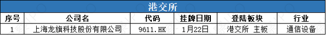 1。龙旗科技:全球智能产物和办事供给商,为全球出名智能产物品牌商和领先的科技企业供给处理方案-包罗产物研究、设想、制制及支撑。上市首日收涨3。55%,截至1月26日收盘报31。000港元/股,取刊行价31。00港元/股持平,总市值约263亿港元。